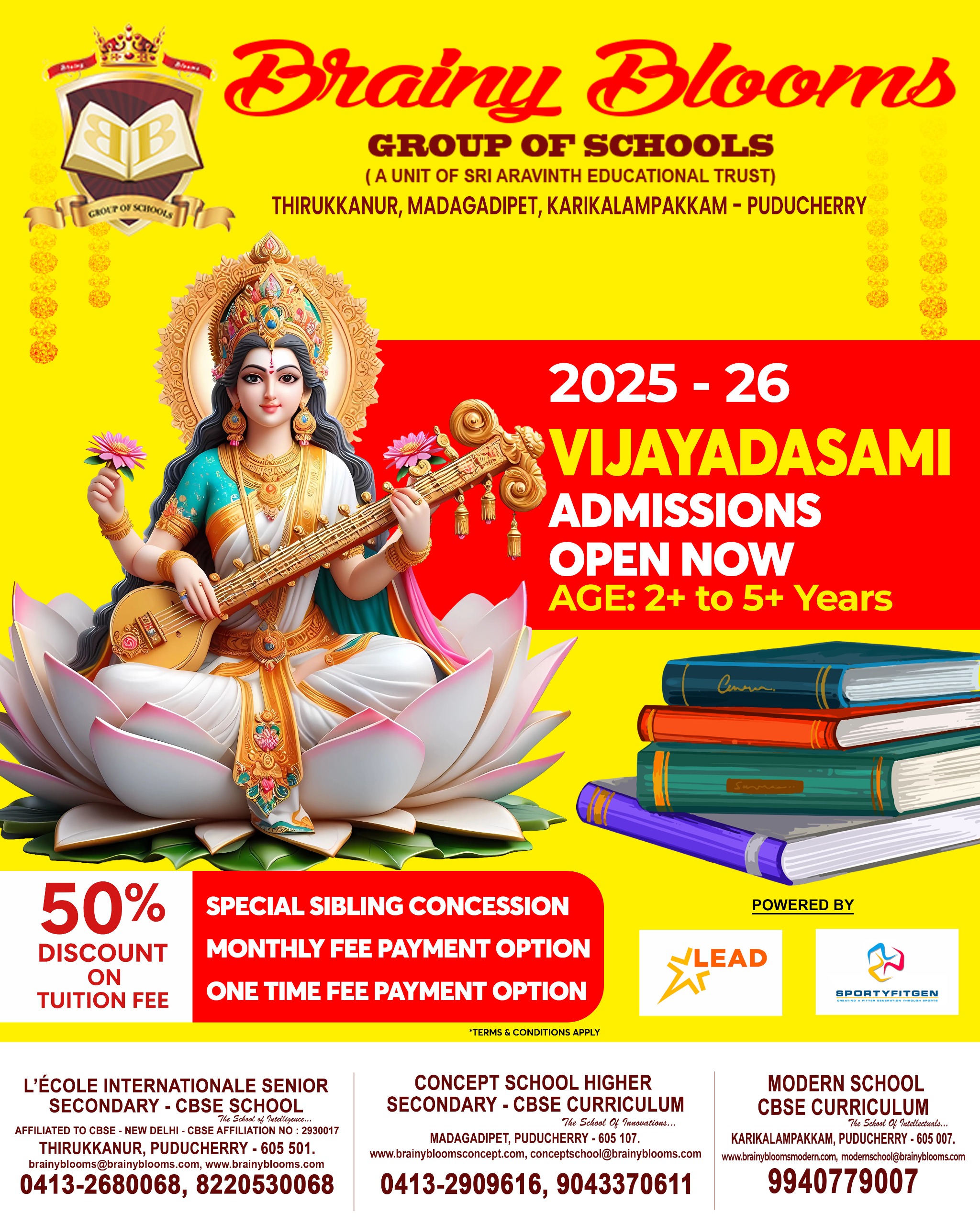 Brainy Blooms is Best Modern School in Pondicherry. It welcomes children from all background. We, at Brainy Blooms, believe that a child's friendly atmosphere is essential for learning. We use innovative methods to make learning enjoyable and meaningful. Framework of our academic and co – curricular activities are carefully planned and implemented to ensure holistic development of child's personality to prepare them for responsible adulthood. Through integrating progressive methods of education we strive to prepare children for their career by developing into bright, aware, responsible, and confident individual. .